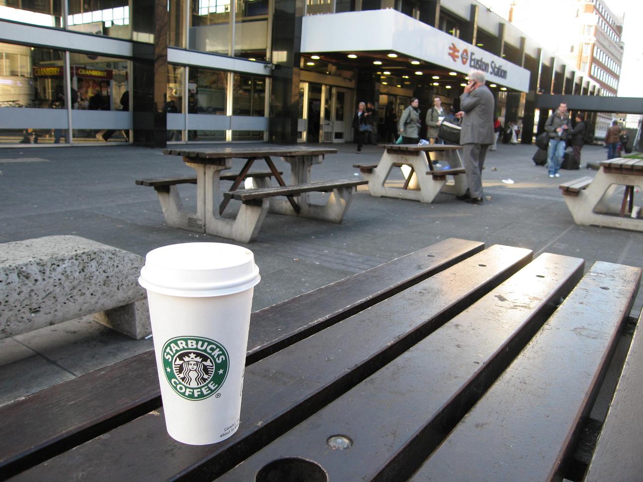 | ユーストン駅前にある、小さなスターバックス 実は、日本でスタバに行った事がない。 何処にでも当たり前のようにあるのだが、当たり前すぎて利用した事がない。 隣のコーヒースタンドを利用しようと思ったのだが、待っている人がいたので、隣のスタバでコーヒーを。 初めてのスタバは、ロンドンで。
