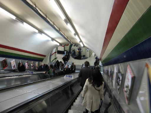 | バスはロンドン三越前に到着 ストーンヘンジ&バース観光は終わりだ。 そのままピカデリーサーカス周辺をぶらつき、ソーホー地区をぶらつき、駅に戻ってきた。 地下へ降りていくエスカレーター ブッシュ大統領のポスターがたくさん貼ってあったが、ほとんどいたずらされている。 鼻の穴に「ガム」「画鋲」「黒く塗る」 何処の国も、同じいたずらをする・・・・・ 構内では、素人ミュージシャンの演奏