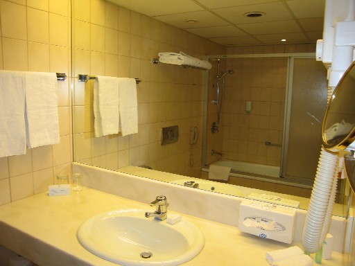 海外だとシャワーだけというのもよくあるのだが、ここのホテルはバスタブもあった。 あまり湯を張って浸かるということもしないのだが、それでも気持ち的にはバスタブがあるとうれしい。 ヒルトンのようなホテルに宿泊するのはうれしいのだが、一人参加ゆえに追加代金が高くなるのがネック。